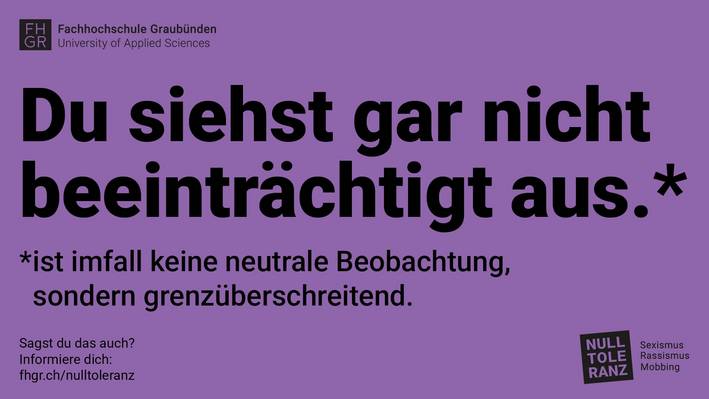 Wie bringen wir das Thema Diversity und persönliche Integrität der gesamten Hochschulgemeinschaft näher – und wie können wir die Nulltoleranz an der FH Graubünden gemeinsam leben?