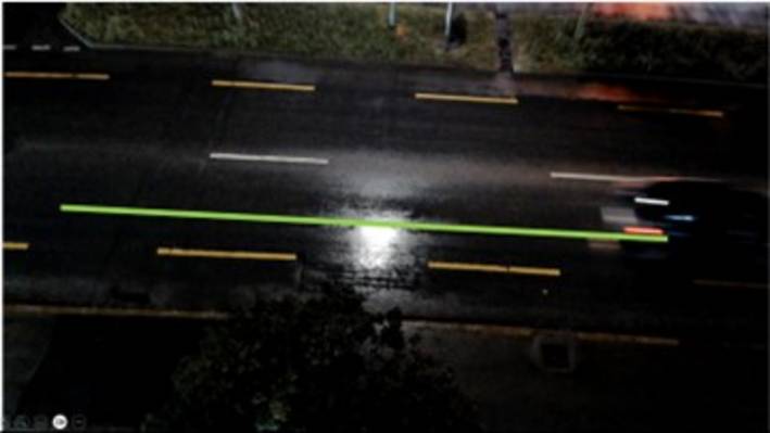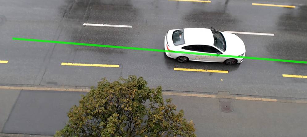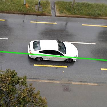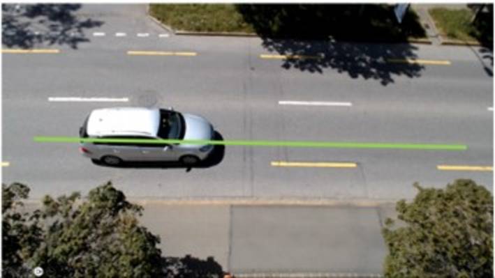 Im ersten Schritt wird auf dem Kamerabild eine Linie markiert, entlang welcher der Sensor die Fahrzeuge erkennen soll (Abb. 2). Für jedes Objekt werden die Länge und die Geschwindigkeit ermittelt und übertragen.