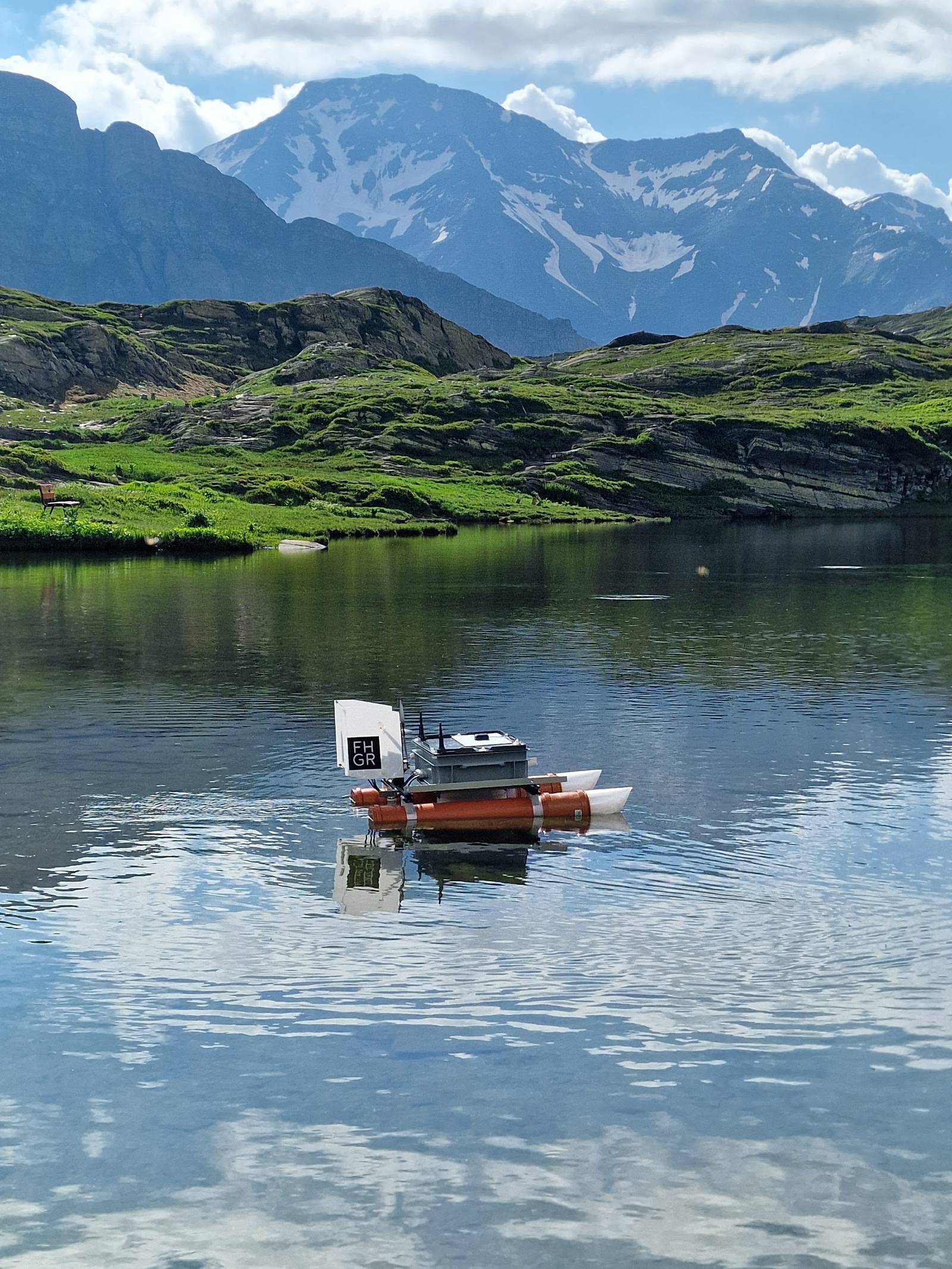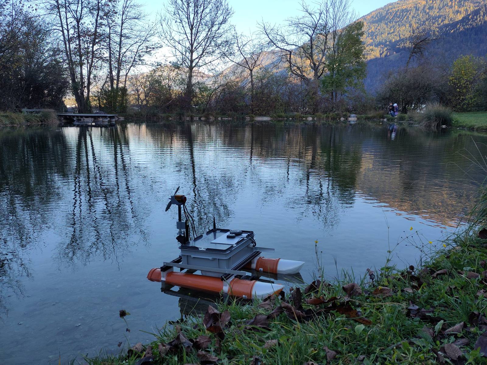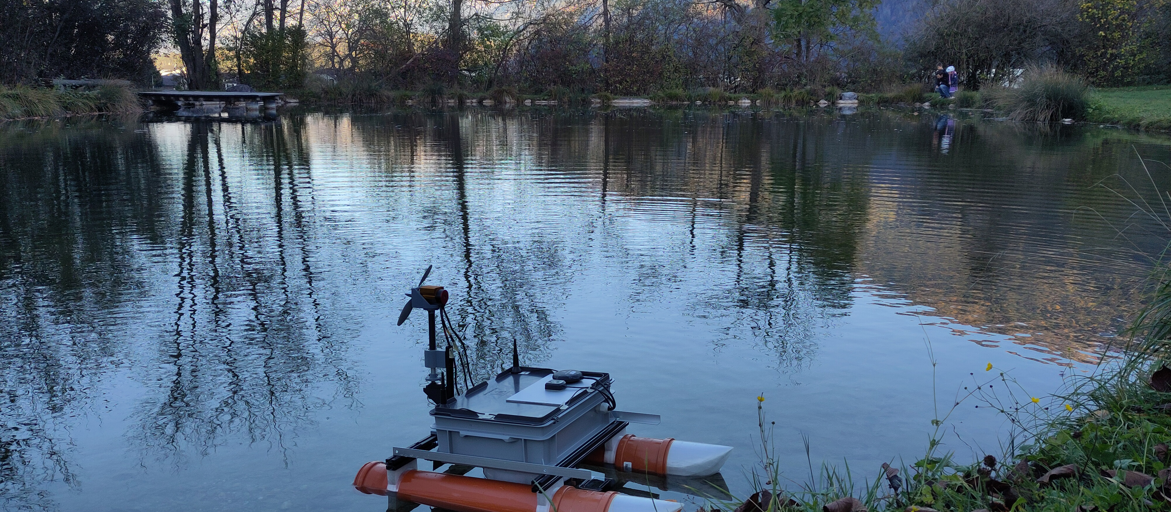 Entwicklung eines autonomen Wasserfahrzeugs (uncrewed surface vessel, kurz USV) zur Erstellung von georeferenzierten Orthofotos des Gewässergrundes in ufernahen Bereichen. Aktueller Hintergrund ist die Unterstützung von Fachleuten, z. B. Biologinnen und Biologen, beim Screening und Monitoring von Wasserpflanzen.