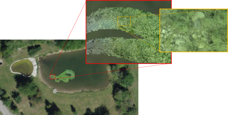 Orthofotos der Erdoberfläche stehen heute grossflächig zur Verfügung und werden z. B. für die Kartierung und Vermessung eingesetzt. Orthofotos des Gewässergrundes im Uferbereich wären für Fachleute ebenfalls sehr nützlich, insbesondere für das Screening und Langzeitmonitoring von trittempfindlichen Wasserpflanzen. Derzeit werden solche Arbeiten oft manuell – watend oder vom Stand-Up-Paddle-Board (SUP) aus – durchgeführt, was ein umfassendes, aussagekräftiges und vergleichbares Monitoring erschwert.