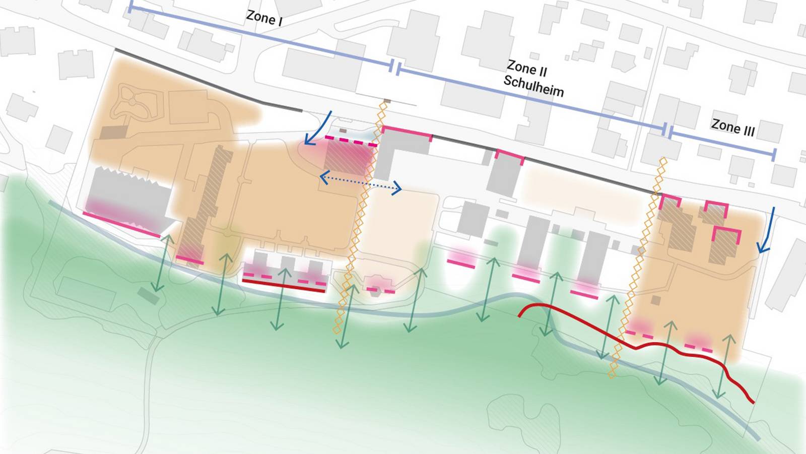 Die Resultate aus dem Arealentwicklungsprozess werden planerisch im Sinne eines Massnahmenplans aufgezeigt und in ihrer zeitlichen Abhängigkeit dargestellt. Dabei werden alle Erkenntnisse in ihrer Abhängigkeit erfasst. Die Einzelbauten werden mit ihren Anforderungen beschrieben, die Machbarkeit bezüglich Volumen und Flächen wird überprüft.