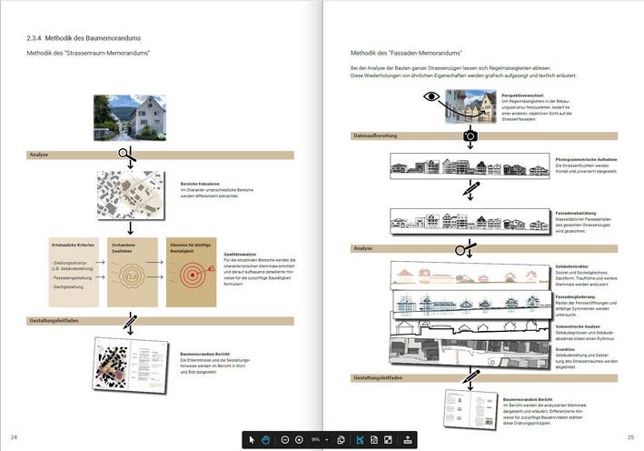 Das Baumemorandum dient der Pflege der baukulturellen Werte. Eine präzise Darstellung der Qualitäten hebt das Instrument von anderen Gestaltungshandbüchern ab. Der Nutzen des Instruments zeigt sich auf unterschiedlichen Ebenen: