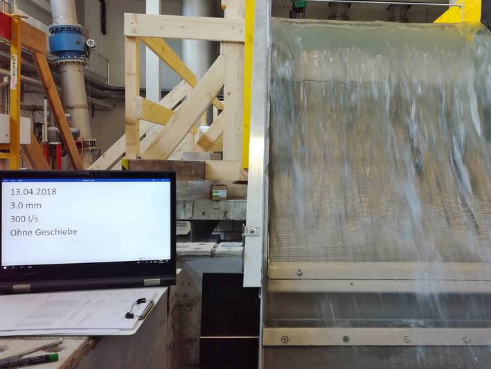 In dieser Projektphase 2 wurden umfangreiche hydraulische Versuche unter 1:1 Bedingungen durchgeführt. Diese Versuche konzentrierten sich darauf, die Schluckfähigkeit und Abscheidungsrate der Coanda-Rechen zu bestimmen. Darüber wurden Massnahmen zur Optimierung von Wasserfassungen mit Coanda-Rechen erarbeitet.