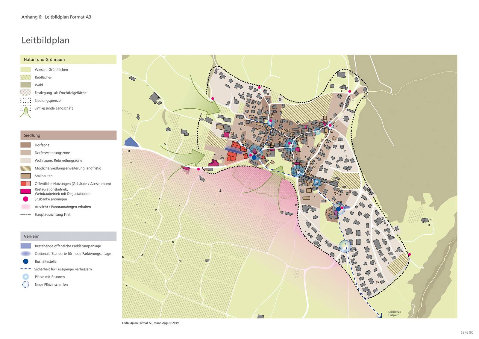 Die Umsetzung siedlungsplanerischer Ideen und Konzepte erfordert eine intensive Auseinandersetzung mit und in der Gemeinde. Seit einigen Jahren erarbeitet das IBAR-Team für die Gemeinde Jenins – zum Teil zusammen mit den Architekturstudierenden der FH Graubünden – unterschiedliche Konzepte für Ersatz- und Neubauten, Parkierungslösungen zur Entlastung des Dorfkerns, Quartierentwicklungen sowie Gebäudeanalysen. Nun sollen diese Ideen zu einem räumlichen Leitbild für das Dorf Jenins zusammengefasst werden. Grundlage hierfür sind die Lokalisierung der Nutzungsreserven und die Entwicklung der Dynamik dieser Schlüsselgebiete. Die dazu gegründete «Arbeitsgruppe Ortsplanung» als Sprachrohr der Gemeindebevölkerung befragte die Grundeigentümerinnen und Grundeigentümer von unternutzten oder nicht genutzten Baulandparzellen zu deren Zukunftsplänen. Die Baulandbesitzerinnen und Baulandbesitzer wurden schon zu Beginn der Projektphase in die Planung integriert und gestalteten diese mit. Das Konzept des partizipativen Prozesses und der dazugehörige individualisierte Fragebogen weckten auch über die Kantonsgrenzen hinaus das Interesse von Fachkreisen. Parallel dazu wurden auch die gestalterischen und räumlichen Werte des Dorfes analysiert. Aufbauend auf den Qualitäten und Entwicklungstendenzen wurde ein kommunales räumliches Leitbild als Zukunftsbild für die Gemeinde erarbeitet.