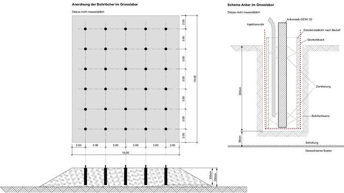 Ziel dieses Forschungsprojekts war es, diese Problematik zu analysieren und das Tragverhalten von Ankern in Geotextilsäcken zu verbessern. Am Ende des Projekts entstand ein Merkblatt des Bundesamts für Umwelt, welche die Materialseite, die Einsatzgebiete und den Einbau von Geotextilsäcken bei Ankern erläutert.
