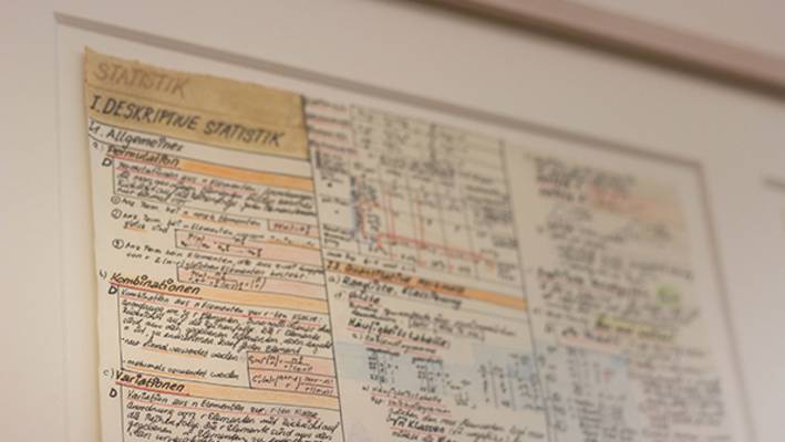 Hinter dem Schreibtisch im Büro von Jürg Kessler hängt eine Collage mit handgeschriebenen Notizen zur Prüfungsvorbereitung im Fach Statistik. «Meine Frau hat sie mir zur Weihnachten geschenkt», erzählt er mit einem Lächeln. Die zu einer Collage verarbeiteten Notizzettel sind ein Andenken an seine Studienzeit an der ETH Zürich. «Das Studium an der ETH war sehr intensiv. Die Leistungsanforderungen waren hoch», sagt Jürg Kessler über seine Ausbildung zum Vermessungsingenieur. Heute geht er noch immer fast täglich an einer Hochschule ein und aus – mittlerweile allerdings als Rektor der FH Graubünden.