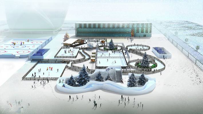 Um eine Bespielung und permanente Inszenierung über einen längeren Zeitraum zu gewährleisten, muss sichergestellt werden, dass eine hierfür nutzbare Eisfläche witterungsunabhängig produziert werden kann. Dafür sind die Umrüstung eines Teilbereichs des Natureisfelds auf Kunsteis und die Aufwertung der Gastronomie wichtige Voraussetzungen. Verschiedene Optionen (ein kleines Kunsteisfeld vor dem Sportzentrum, eine Umrüstung der Eisschnelllaufbahn auf Kunsteis und eine Inszenierung mit diversen Kunsteisfeldern) wurden präsentiert, und schliesslich wurde ein «Winterwunderland» auf Kunsteis empfohlen. Als mögliche Elemente in diesem Eis-Park wurden eine Kinderzone, eine Romantikzone, eine Eis-Rutsche, ein Freestyle-Curling, ein Ice-Cross-Pump-Track, eine Eis-Disco, ein Eis-Kletterturm, eine Bühne und eine Tribüne vorgeschlagen.