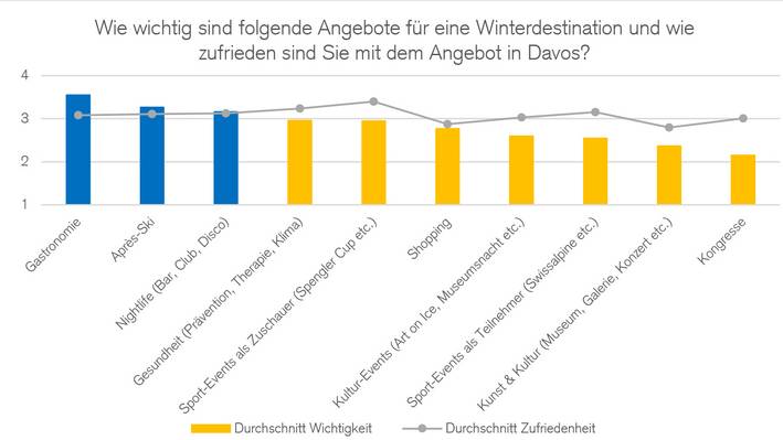 Ende Winter 2015 wurden bei Davoser Gästen, Einheimischen und Leistungsanbietenden Befragungen durchgeführt. Bei der spezifischen Betrachtung der Eissportarten war eine gewisse Diskrepanz zwischen den Gästen, welche das Angebot als «eher unwichtig», und den Einheimischen, welche dieses als «eher wichtig» einstuften, erkennbar. Gleiches galt für die Leistungsanbietenden. Auch sie massen den Eissportarten eine hohe Wichtigkeit bei und waren gleichzeitig relativ zufrieden mit diesen. Von den Gästen wurde die Zufriedenheit in Bezug auf alle abgefragten Sportarten höher gewichtet als deren Wichtigkeit. Auch waren die Gäste mit dem Angebot an Eissportarten «eher zufrieden».