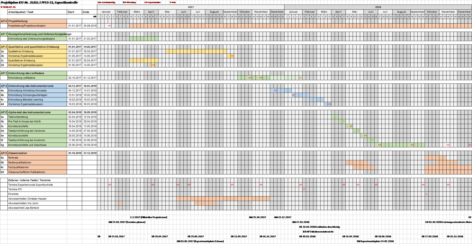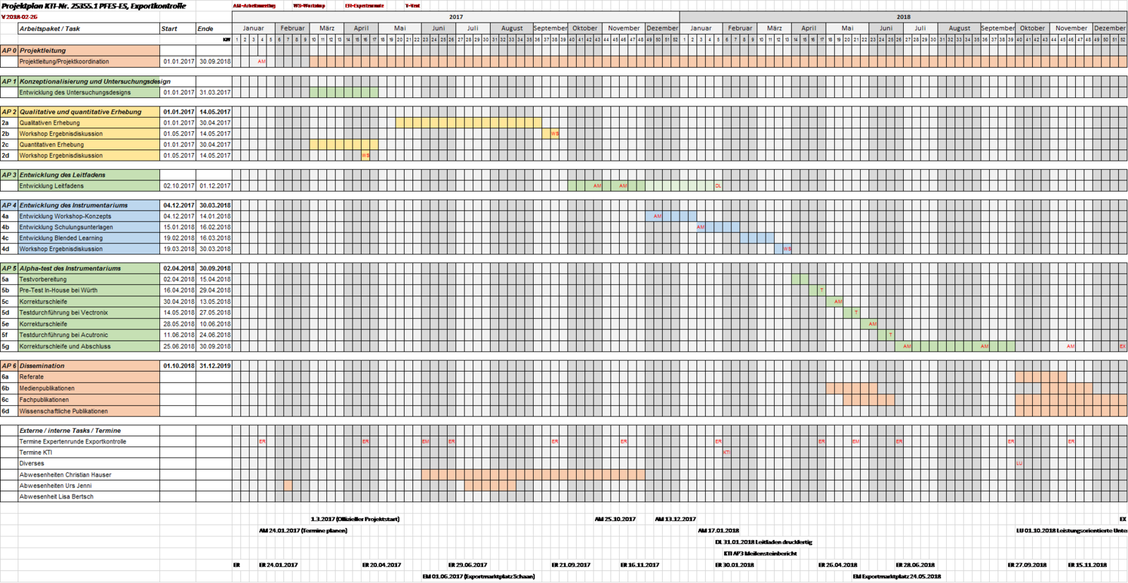 Nebst den hohen Anforderungen an die Strukturierung des Projekts durch die Beantragung bei Innosuisse wurden im Projekt «Exportkontrolle» folgende zusätzliche Massnahmen getroffen: Zum Kickoff-Meeting standen ein detaillierter Projektplan sowie ein umfassendes Budget für die gesamte Projektlaufzeit bereit. Während der Projektlaufzeit wurde die Einhaltung des Budgets laufend kontrolliert. Dazu wurden Stunden- und Cash-out-Journale geführt und das Budget wurde laufend angepasst. Workshop- und Meeting-Termine wurden bereits beim Kickoff gemeinsam mit den Projektpartnern für die kommenden 12 Monate fixiert. Damit war sichergestellt, dass die Projektpartner an den geplanten Workshops und Meetings zur Verfügung standen.