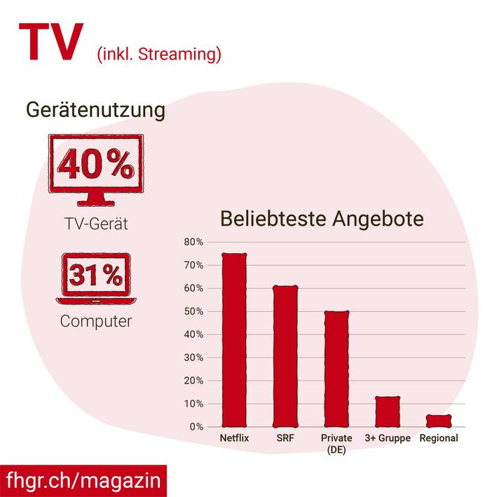 Schliesslich zeigt das Nutzungsverhalten der Studierenden auch auf, welche Medientrends in welchen Branchen neue oder zusätzliche Arbeitsplätze generieren werden. Diese Informationen können der FH Graubünden aufzeigen, wofür die Studierenden ‒ speziell jene am Institut für Multimedia Production ‒ ausgebildet werden sollen.