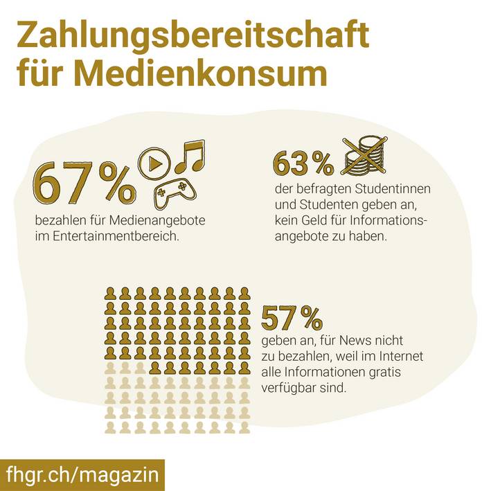 Bezahlte Informationen und der Journalismus haben einen schweren Stand gegenüber Gratis-Angeboten im Internet und den populären Streaming-Angeboten wie Netflix oder YouTube. Dies zeigt eine Nutzungserhebung, die bei Studierenden des Bachelorstudiums Multimedia Production durchgeführt wurde. Diese Entwicklung fordert auch die Fachhochschule.
