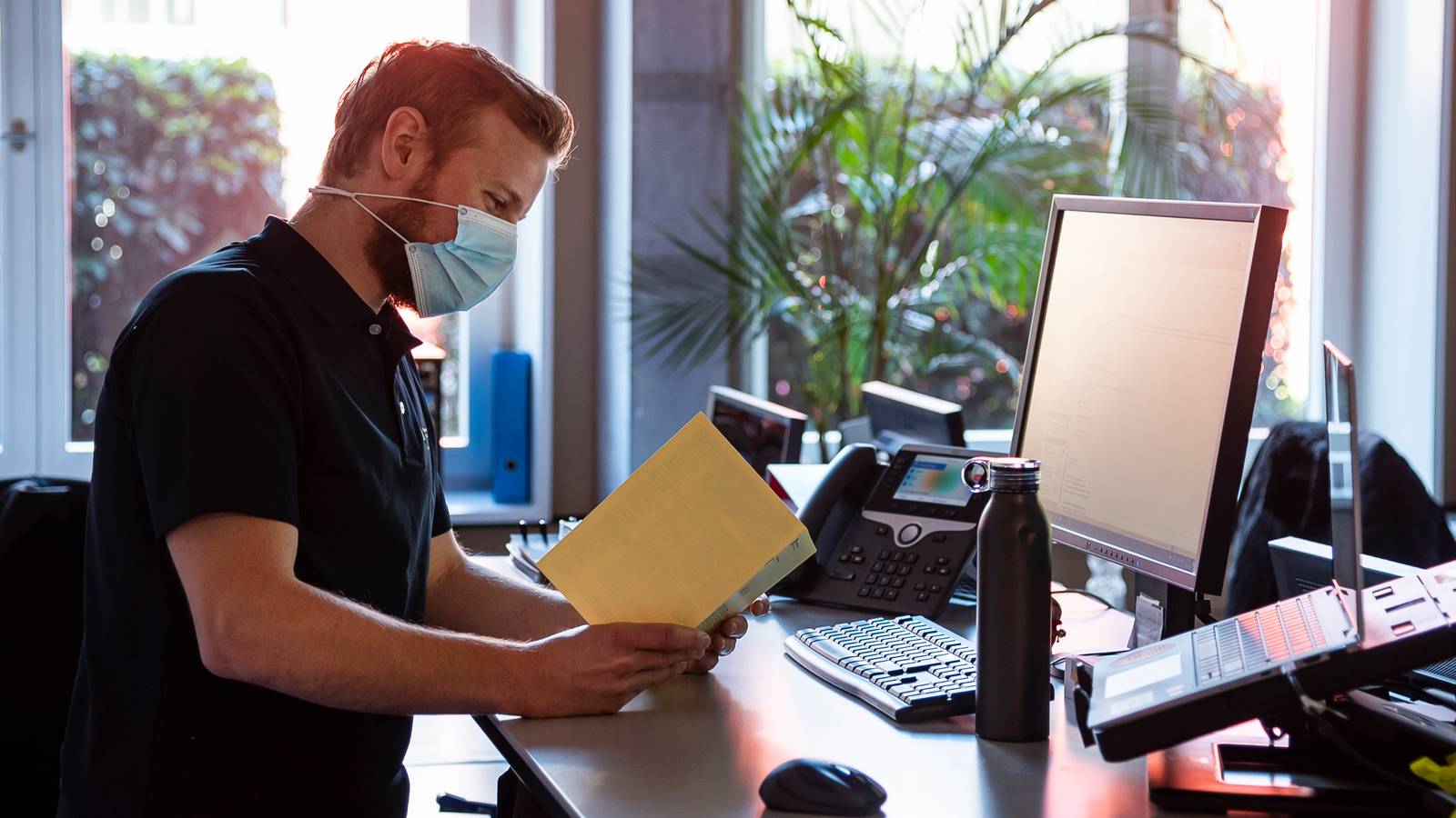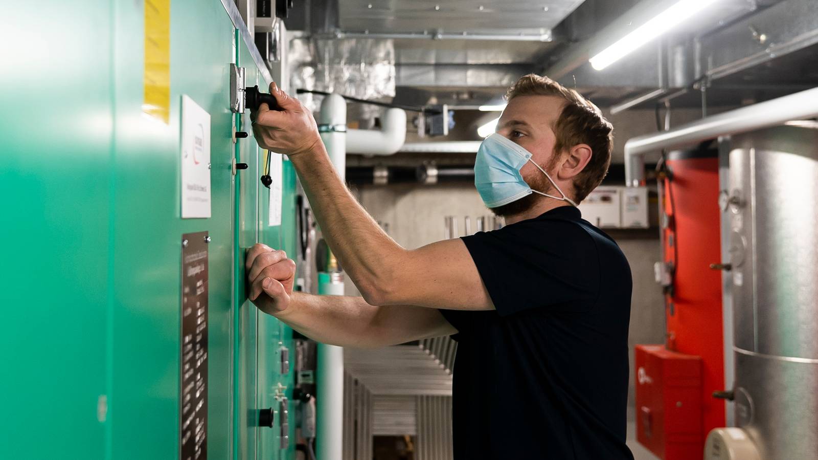 Der Tag des Hauswarts an der FH Graubünden beginnt im Büro. Dort werden als Erstes die E-Mails abgerufen, denn viele seiner Aufträge werden über diesen Kanal kommuniziert. Dazu gehört zum Beispiel die Materialausleihe oder die Reservierung von Räumlichkeiten für verschiedene Anlässe. Wenn es dann so weit ist, hilft Michael Cavegn auch beim Auf- und Abbau des Anlasses (Infrastruktur etc.) mit. Am Computer verwaltet Cavegn auch die interne Autovermietung. Die FH Graubünden besitzt mehrere Fahrzeuge, welche von den Mitarbeitenden jederzeit ausgeliehen werden können. Eine weitere Aufgabe im Büro ist die Erstellung des Instandhaltungsplans, einer Liste mit allen Aufgaben, die innerhalb der Hochschule zu erledigen sind. Diese werden dann unter den Mitarbeitenden des Service-Teams aufgeteilt.