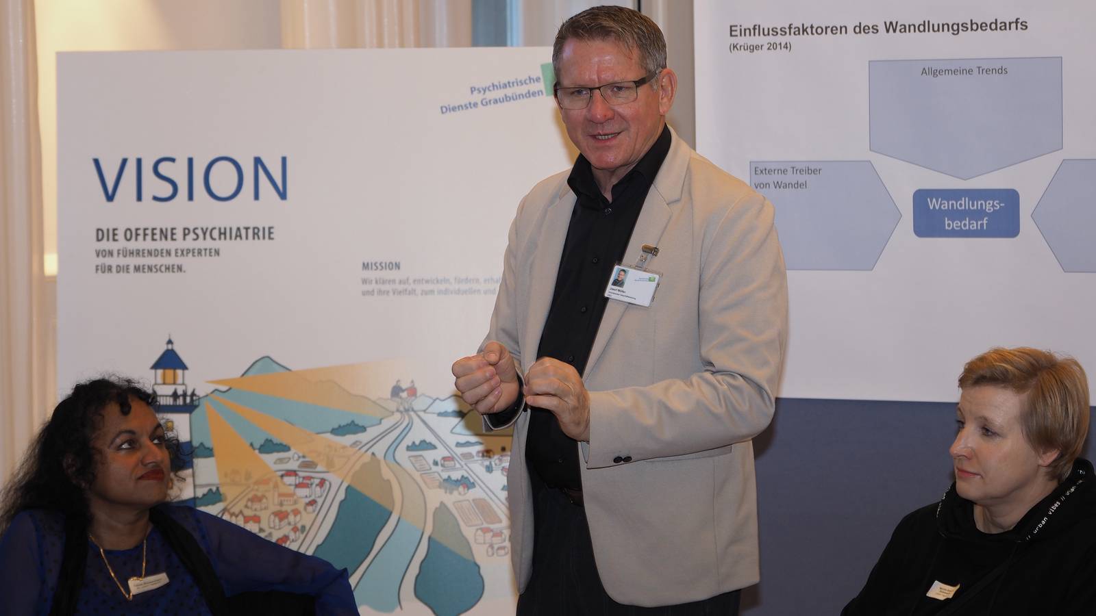 Das «Change-Modul» ist eines von fünf Modulen im Fortbildungs- und Trainingsprogramm «Akropolis» der Psychiatrischen Dienste Graubünden. Dieses Programm liefert Antworten auf die Herausforderungen durch demografischen Wandel, Fachkräftemangel, Wandel der Arbeitswelt und Digitalisierung und die daraus resultierenden Führungsaufgaben. «Change» ist dabei ein wesentliches Modul, dessen Inhalte vom FHGR-Trainingsteam (Prof. Dr. Frank Bau, Prof. Dr. Karin Eggert, Robert Müller und Claudio Alig) für die PDGR entwickelt wurden.