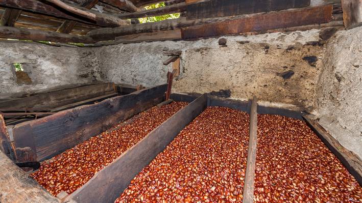 Kastanienbäume und ihre Früchte haben im Bergell eine lange Tradition. Die Selven zwischen Soglio und Castasegna gelten als eines der Wahrzeichen des Tals. Die Verarbeitung der Nussfrüchte, wie sie im Val Bregaglia zelebriert und gepflegt wird, wurde gar in die Liste des immateriellen Kulturerbes der Schweiz aufgenommen. Traditionen rund um die wandelbare Frucht gibt es viele, doch wie wird in diesem Zusammenhang mit Fortschritt umgegangen?