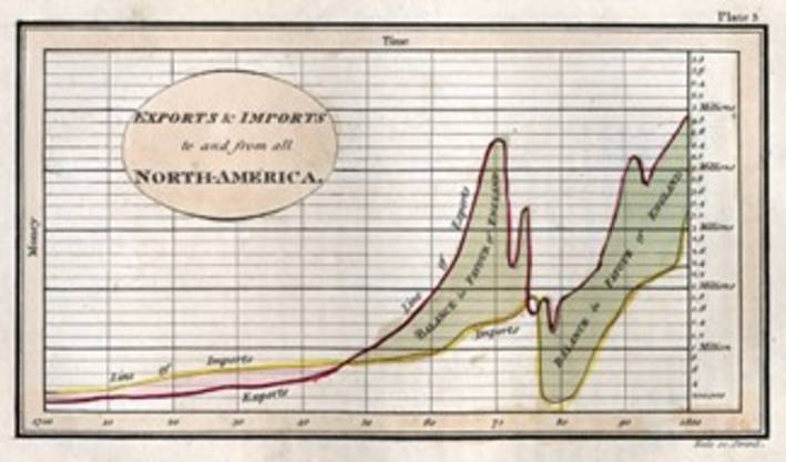 Wandel in Daten darzustellen hat eine viel kürzere Geschichte als angenommen. Das erste dokumentierte Bild, hatte der Brite William Playfair erstellt. Playfair hat im 18. Jahrhundert Liniendiagramme, Balkendiagramme und Kreisdiagramme erfunden und legte damit im Jahr 1786 den Grundstein für das gesamte Feld der Datenvisualisierung. Seine Darstellungen boten erstmals die Möglichkeit, Veränderungen – etwa Handelsüberschüsse und -defizite – auf einen Blick zu erkennen (Abb. 1). Diese Innovation machte Daten bildlich zugänglich und schuf eine ganz neue Sprache für die Kommunikation. Auch heutzutage sind die von Playfair etablierten Diagramme, Linien-, Balken und Tortendiagramme, dank ihrer Einfachheit weit verbreitet. Allerdings haben sich die Werkzeuge und Techniken, um Diagramme zu erstellen und zu betrachten, immer weiterentwickelt. Heute können Millionen von Datenpunkten gleichzeitig visualisiert und dynamische Veränderungen in Echtzeit dargestellt werden. Fortschritte in der Computertechnologie, bei Algorithmen und im Grafikdesign haben dazu geführt, dass Datenvisualisierungen interaktiv, animiert und hochgradig anpassbar geworden sind. Sogenannte Dashboards und Visual Analytics Tools ermöglichen es, tagesaktuelle Trends zu verfolgen, Prognosen zu erstellen und Entscheidungen zu treffen – sei es im Management von Lieferketten, der Steuerung von Energieflüssen oder der Überwachung von Pandemien.