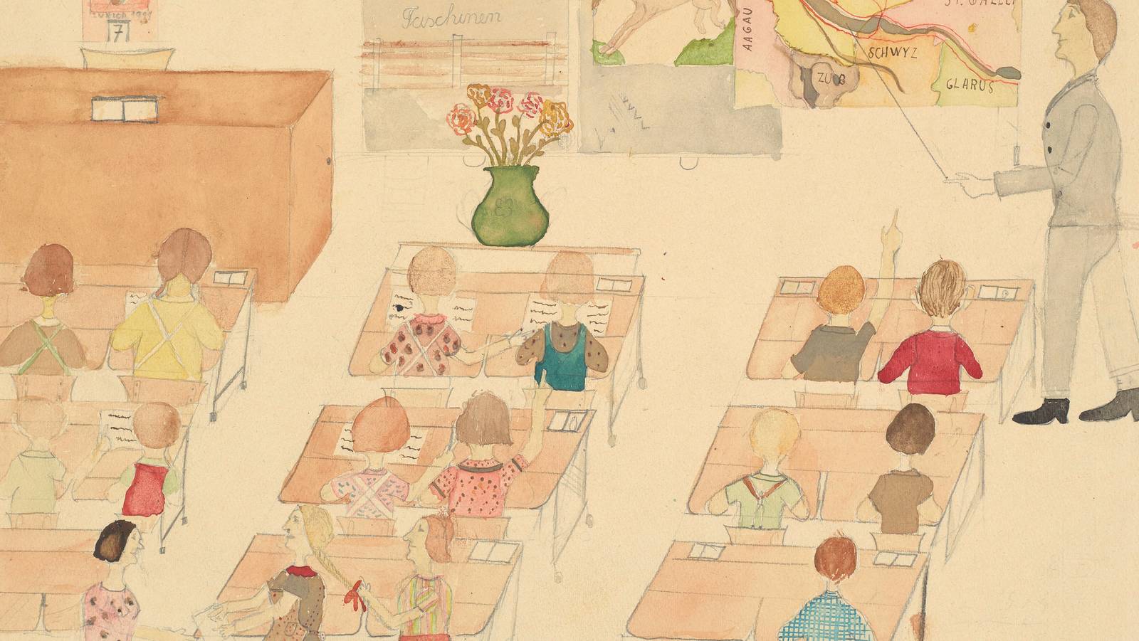 Viele von uns haben sicher noch irgendwo auf dem Dachboden oder in vergessenen Ecken von Schränken eigene Zeichnungen aus der Schulzeit eingelagert. Neben dem allenfalls nostalgischen Wert wird diesen Zeichnungen keine grössere Beachtung geschenkt. Stellen Sie sich nun aber eine Sammlung von 50 000 Kinder- und Jugendzeichnungen vor, die über ein ganzes Jahrhundert gewachsen ist. In diesem Zusammenhang stellen sich plötzlich ganz andere Fragen: Welche Themen beschäftigten damals die Kinder und Jugendlichen? Wie hat sich das Fach «Zeichnen» zum bildnerischen Gestalten weiterentwickelt? Was lässt sich anhand der Zeichnungen über die damalige Gesellschaft herauslesen? Auf einmal wird es möglich, einen Blick in eine frühere Zeit zu werfen, auf Szenarien, die abseits der Geschichtsbücher geschrieben oder wohl eher … gezeichnet wurden.