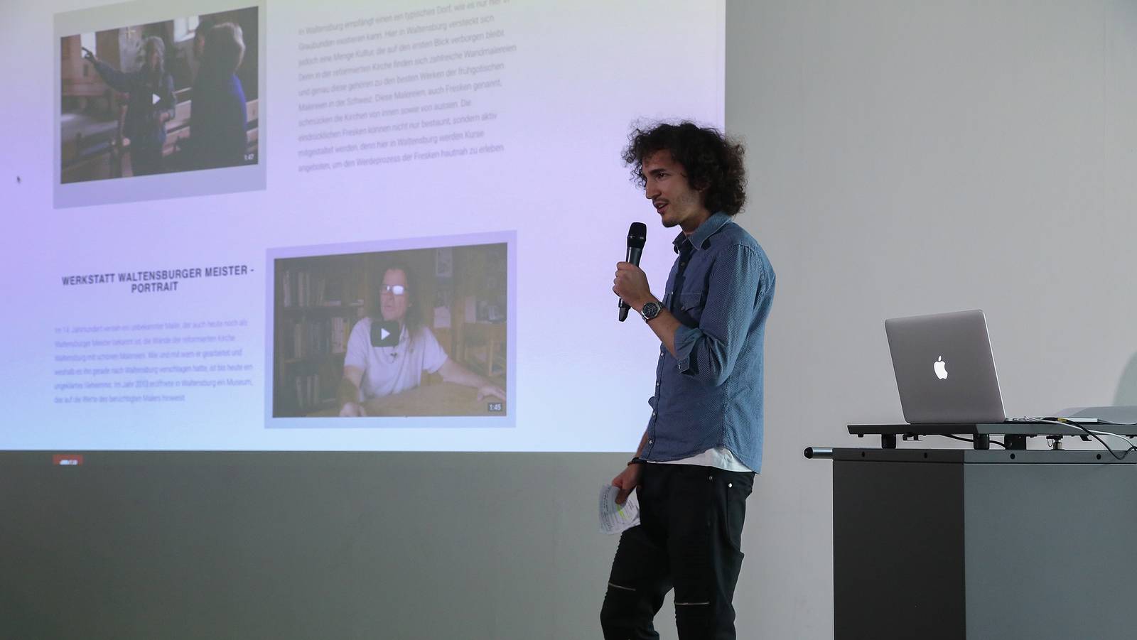 In einem rund zweimonatigen Arbeitsprozess entwickelten die Studierenden gemeinsam einen Newsroom mit multimedialen Inhalten in Form von Texten, Bildern, Infografiken und Videos, mit denen sich neun bedeutende Bündner Museen vorstellen und um Besucherinnen und Besucher werben. Bei der Gestaltung der Produkte mussten sich die Studierenden sowohl an das Corporate Design der MGR als auch an dasjenige von ContentO halten. Michel Gloor erstellte mit seinem Team ein Filmporträt des Bahnmuseums Bergün und der dazugehörigen Albulabahn als weltbekanntem UNESCO-Weltkulturerbe. Für ihn sei dies in vielerlei Hinsicht eine gute Erfahrung gewesen: «Durch die Zusammenarbeit mit einer lokal stark verwurzelten Organisation konnte ich sowohl auf fachlicher als auch menschlicher Ebene dazulernen. Gerade solch ein praxisbezogenes Projekt verdeutlicht alle Aspekte der realen Umsetzung, die mit reiner Theorie nicht erlernbar gewesen wären.»