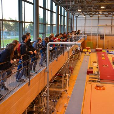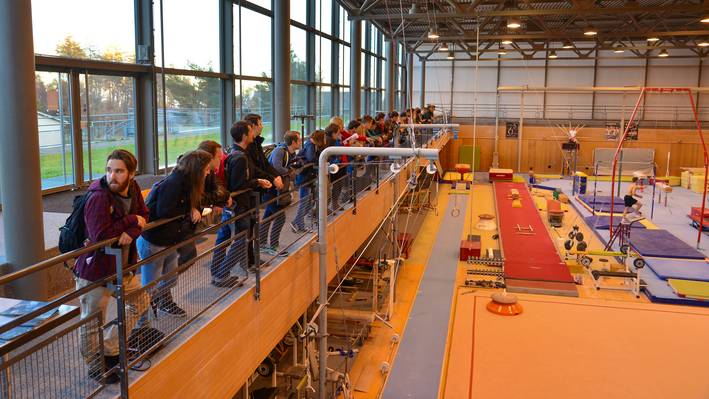 Da stand er vor uns, Werner Günthör, zwei Meter gross und mit tiefer Stimme. Der einst beste Kugelstösser der Welt nahm uns mit auf einen Rundgang durch das Sportzentrum. Vom Areal «Ende der Welt» bis zu den Unterkünften der Kunstturnerinnen und -turner bekamen wir einen ersten Eindruck davon, wie weitläufig das Areal ist. Zusätzlich hatten wir auch Gelegenheit, die Schweizer Turnnationalmannschaft beim Training zu beobachten. Beeindruckend, mit welcher Konzentration und Hingabe diese Sportlerinnen und Sportler mehrere Stunden pro Tag an den verschiedenen Geräten schuften. Natürlich genossen wir auch den eindrücklichen Ausblick von Magglingen direkt auf den Bielersee ‒ ein Muss für jeden Besucher.