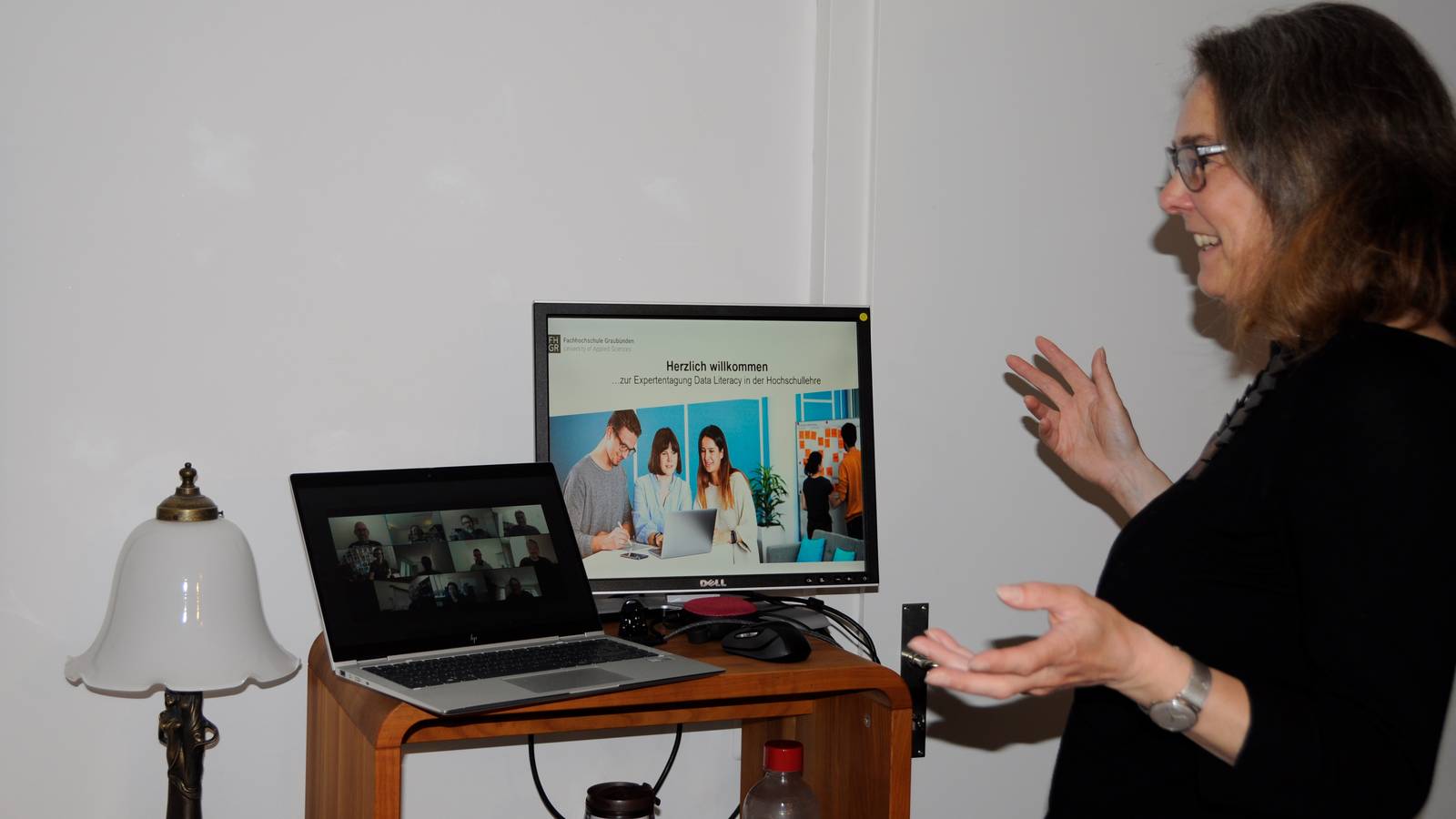 Die virtuelle Expertenkonferenz hat an zwei Vormittagen im Mai 2021 stattgefunden. Teilnehmende waren die eingeschriebenen Studierenden des Kurses, aber auch interessierte Kolleginnen und Kollegen – sowohl der FH Graubünden als auch seitens der am Projekt «Swiss Digital Skills Academy» beteiligten Hochschulen. Nebst den Beiträgen der Studierenden gab es an der Konferenz auch zwei Keynote-Referate: Katharina Schüller, eine führende Expertin im Bereich Data Literacy aus Deutschland, sprach über «Data Literacy – Schlüsselkompetenz des 21. Jahrhunderts»; die zweite Keynote Speech wurde vom Leiter des Schweizerischen Instituts für Informationswissenschaft, Ingo Barkow, gehalten. Im Rahmen der studentischen Beiträge wurde die Vermittlung von Datenkompetenz an Hochschulen von verschiedenen Seiten beleuchtet. Dabei stand die Vermittlung von Kenntnissen im Fokus – von ethischen Aspekten wie dem kritischen Umgang mit und dem Hinterfragen von Daten, der Interpretation von Datenvisualisierungen und Statistiken bis hin zum Umgang mit Computern und Programmierkenntnissen (Computational Literacy). In Einzelreferaten und einem von Studierenden moderierten interaktiven Roundtable wurden anhand von transferorientierten Lernformen Ideen vorgestellt, wie Teilkompetenzen von Data Literacy an Hochschulen vermittelt werden könnten.