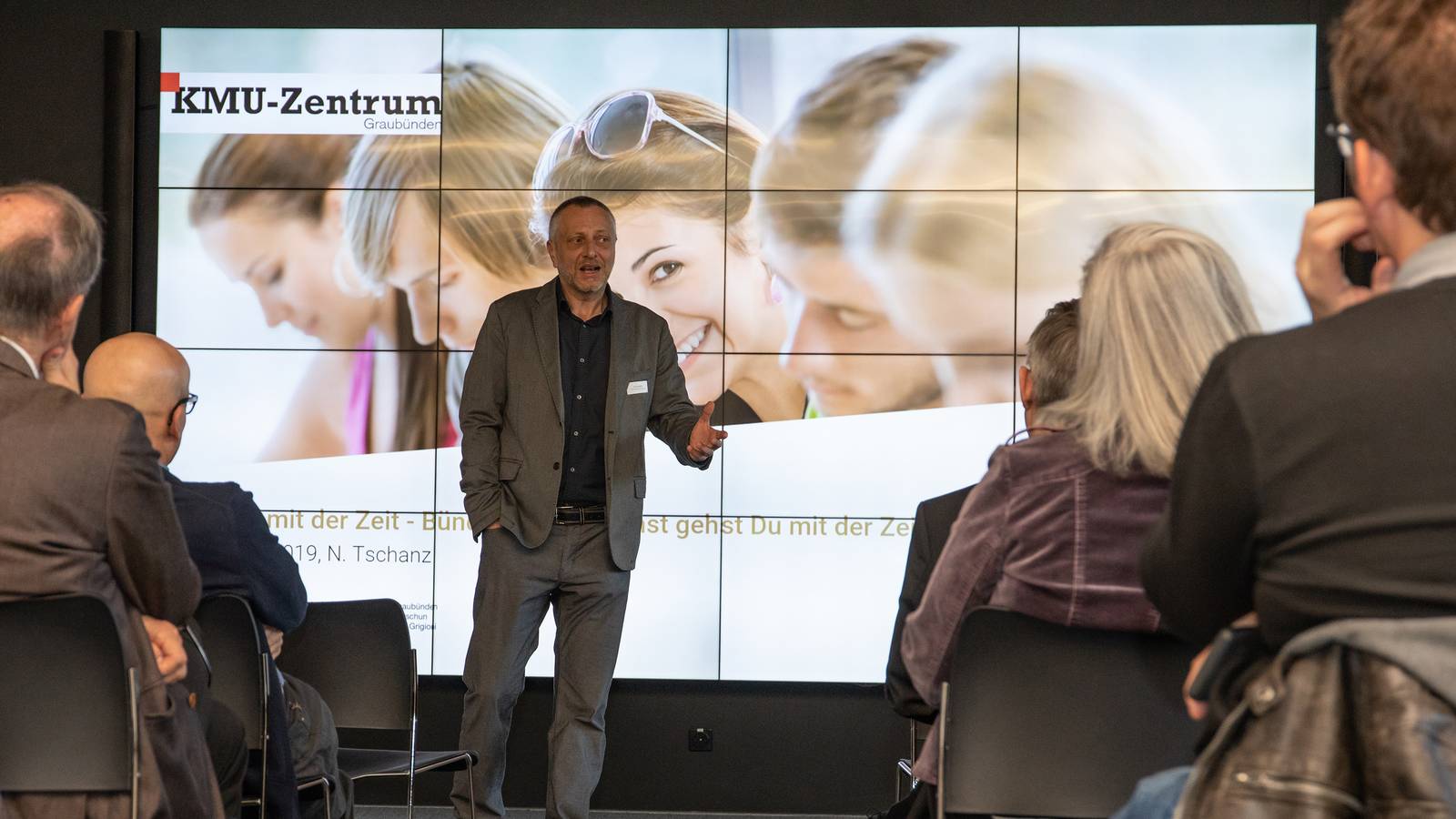 Dieser Slogan des KMU-Zentrums Graubünden ist heute aktueller denn je. Das Zentrum der FH Graubünden unterstützt die Wettbewerbs- und Zukunftsfähigkeit von Unternehmen aus dem Kanton Graubünden und der Ostschweiz. Es bietet seit 22 Jahren Beratung und verbindet Unternehmen jeder Art mit den Leistungen und Kompetenzen der Fachhochschule sowie dem vielfältigen Bündner Ökosystem von Akteuren und Fördermitteln.