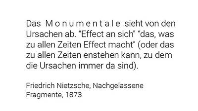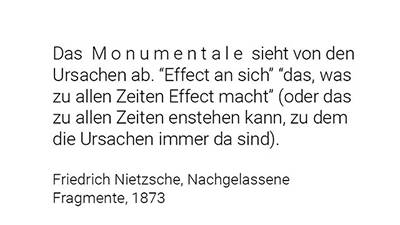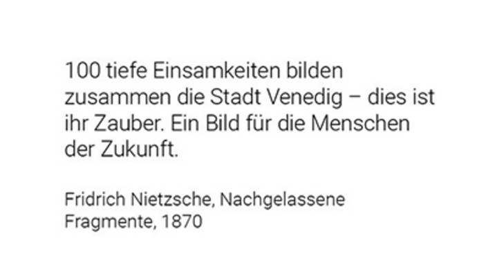 Friedrich Nietzsche schreib, dass “100 tiefe Einsamkeiten” die Stadt Venedig bilden. Er verstand, dass diese tiefen Einsamkeiten, also dass jedes Gebäude sein eigen ist, als den “Zauber” dieser Stadt. In diesem Nachgelassenen Fragment aus dem Jahre 1880 fügte er hinzu: “Ein Bild für den Menschen der Zukunft.” Diese Zukunft ist heute. In unserer heutigen Welt, welche von Michel Houllebecq als “atomistisch” bezeichnet wird, gibt es keine andere Möglichkeit, als dass jedes Bauwerk sein eigen ist. Sowohl räumlich wie idell, besteht heute gar keine andere Möglichkeit Bauwerke als Entitäten zu konzipieren, welche gleichzeitig alles beinhalten und unbegrenzte Möglichkeiten schaffen.