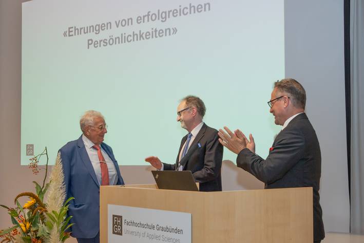 Die FH Graubünden würdigt Persönlichkeiten mit ausserordentlichen Leistungen und ehrenvollen Verdiensten zugunsten der FH Graubünden. Die Ehrungen finden jeweils am Fachhochschultag statt.