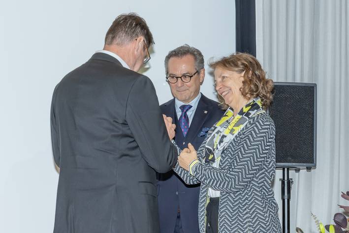 Auch heute ist Dieter Heller noch im Förderverein der FH Graubünden aktiv und ist ein Freund der Fachhochschule. Mit diesem Ehrenkristall soll die Dankbarkeit gezeigt und das Angebot ausgesprochen werden, dass er stets ein gerngesehener Gast an «ünschara Hochschual» sein wird.