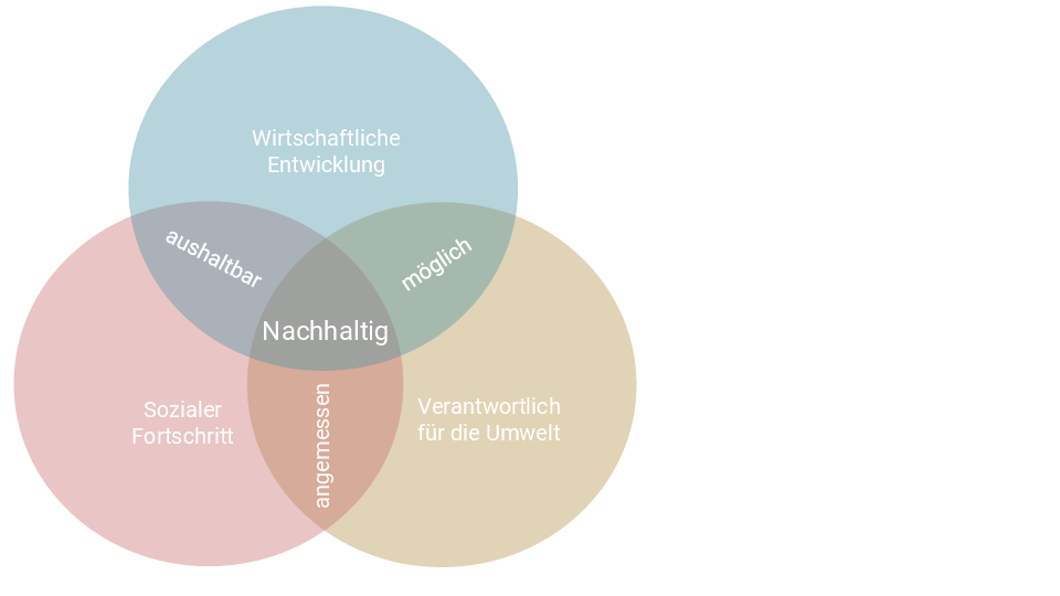 Die FH Graubünden orientiert sich in ihren Arbeits- und Führungsaufgaben am bekannten 3-Sphären-Modell der Nachhaltigkeit. Die Kreise zeigen die drei Dimensionen der Nachhaltigkeit: Umwelt, Wirtschaft und Gesellschaft. Die angestrebte nachhaltige Entwicklung liegt in der Schnittmenge der drei Dimensionen. Ökonomische, gesellschaftliche und ökologische Prozesse sind miteinander vernetzt. Die FH Graubünden handelt deshalb nicht isoliert und eindimensional, sondern berücksichtigt die Wechselwirkungen zwischen den drei Dimensionen Umwelt, Wirtschaft und Gesellschaft.