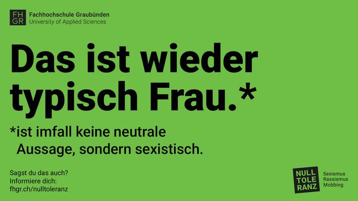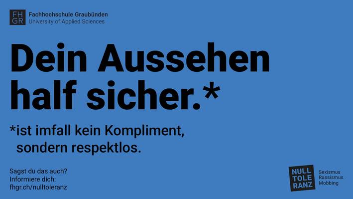 Persönliche Integrität und Respekt betreffen uns alle – im Studium, im Arbeitsalltag und im Miteinander an der FH Graubünden. Ein respektvolles und diverses Miteinander gelingt nur, wenn wir unsere eigene Integrität ernst nehmen und die der anderen achten. Gleichzeitig haben wir gemerkt, dass es viele Fragen gibt, wenn es um Themen wie sexuelle Belästigung, Sexismus, Mobbing und Diskriminierung geht.