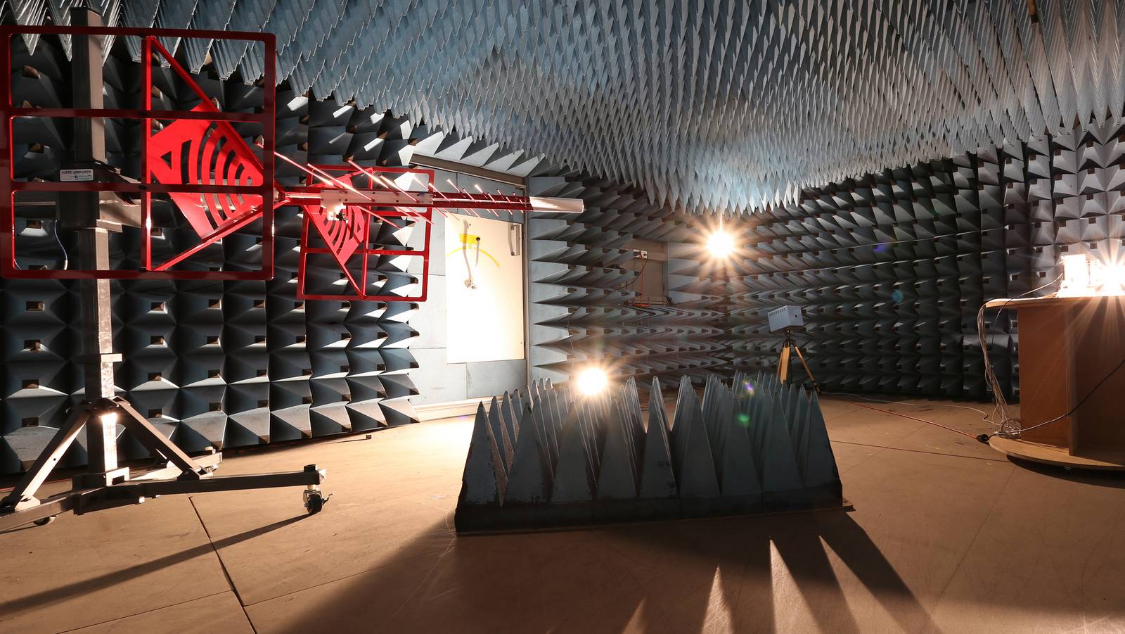 Das EMV-Labor verfügt über einen Absorberraum (ca. 55 m³) für verschiedene Untersuchungen im Zusammenhang mit elektromagnetischer Verträglichkeit. Zur Verfügung stehen Quellen für Immissionsmessungen (leitungsgebunden und gestrahlt) und Netzempfänger für Emissionsmessungen (leitungsgebunden und gestrahlt). Die Messeinrichtungen eignen sich für Untersuchungen im Frequenzbereich bis 6 GHz.