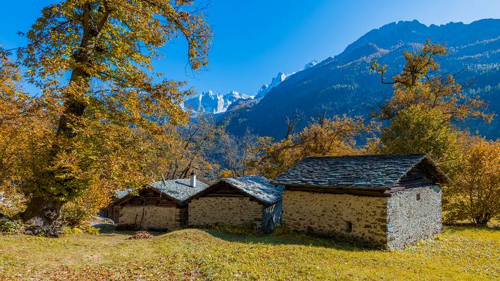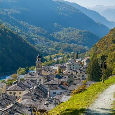 La romantica e selvaggia Val Bregaglia è incastonata tra l'Engadina Alta e il Lago di Como. Dal villaggio alpino di Maloja, a 1800 m di altitudine; si scende, inizialmente in modo rapido lungo una strada serpeggiante, fino all'ex capoluogo Vicosoprano (dove fino al XVII° secolo venivano giustiziate le "streghe"). Continuando la valle si restringe e si notano già i primi influssi mediterranei. Lungo il fiume principale Maira si stagliano a destra e a sinistra imponenti formazioni rocciose, in parte aspre, ma di una bellezza mozzafiato. Da Soglio, villaggio famoso in tutto il mondo, si apre una vista unica sul massiccio del Piz Cengalo, con un'altitudine di 3369 metri. Sui pendii boscosi e fittamente ricoperti di vegetazione si trovano spesso i tipici piccoli fienili che, a volte già semidistrutti, testimoniano il loro passato rurale. I palazzi dell’antica nobiltà locale, spesso sontuosi, formano un contrasto emozionante. Dal villaggio di confine Castasegna (690 m s.l.m.), dall’aspetto tipicamente mediterraneo, il percorso prosegue fino a Chiavenna (330 m s.l.m.).