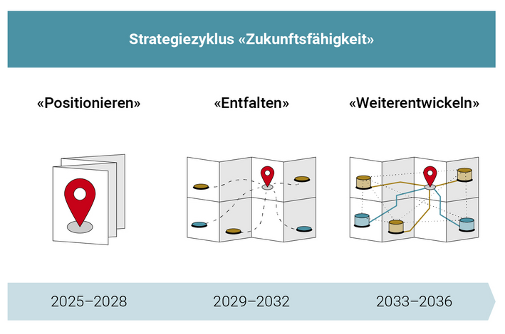 Nel ciclo strategico "Futuro sostenibile" (2025-2036), l'attenzione si concentrerà sull'ulteriore sviluppo del portafoglio di programmi di istruzione e ricerca e, di conseguenza, sull'aumento dell'attrattiva dell'università nel suo complesso. Questo anche in vista del trasferimento nel nuovo centro SUP alla fine del periodo strategico 2025-2028, che è l'unico modo in cui la SUP dei Grigioni può dare il suo contributo all'ulteriore sviluppo del Cantone e della società.