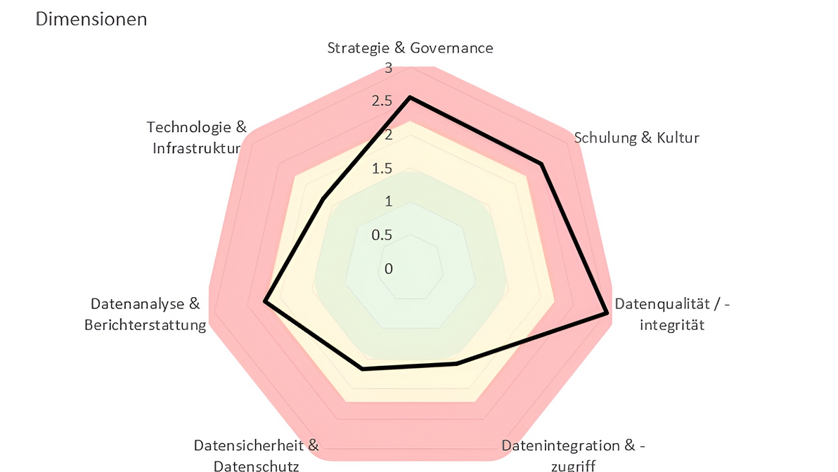 Im Bereich der privaten Wirtschaft sind bereits verschiedene Reifegradmodelle im Einsatz, um die Datenkompetenz, bzw. das Datenmanagement in der Organisation zu evaluieren. Diese Reifegradmodelle wurden als Grundlage genommen und für die Spezifika von Schulen angepasst. Dabei musste berücksichtigt werden, dass in Schulen zwar durch die digitale Transformation immer mehr Daten anfallen, der Umgang mit Daten, anders als bei vielen Unternehmen, jedoch nicht zur Aufgabe der Schulen gehört. Gleichzeitig ist es für Schulen wichtig, mit den besonders schützenswerten Daten im Schulbetrieb kompetent umzugehen. Hier gibt es viel Verunsicherung in den Schulen. Das Instrument zur Selbsteinschätzung soll den einzelnen Schulen helfen aus der Verunsicherung herauszukommen und ein klareres Bild über den Stand der Kompetenz und notwendige Handlungsfelder zu erhalten.