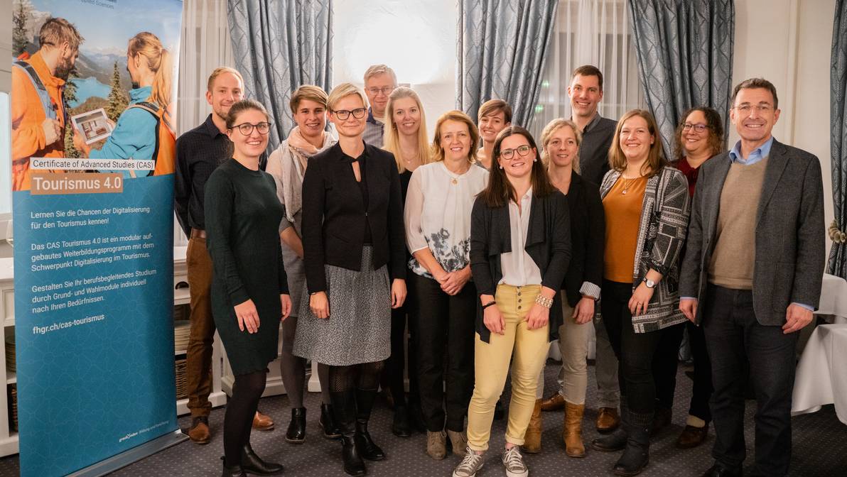Die Digitalisierung ist eine grosse Chance für den Schweizer Tourismus, aber auch eine Herausforderung, denn Unternehmen und Organisationen fehlt es oft an der erforderlichen Fachkompetenz. Keiner reist heute ohne seinen ständigen Begleiter, das Handy, Buchungen werden online getätigt und die Systeme schlagen den Nutzenden aufgrund ihrer Vorlieben ausgewählte Reiseziele vor. Tourismusfachleute müssen dafür gerüstet sein. Pünktlich zum Start der Wintersaison wurden an der FH Graubünden 21 solcher Expertinnen und Experten für ihre Weiterbildung in diesem Bereich ausgezeichnet.