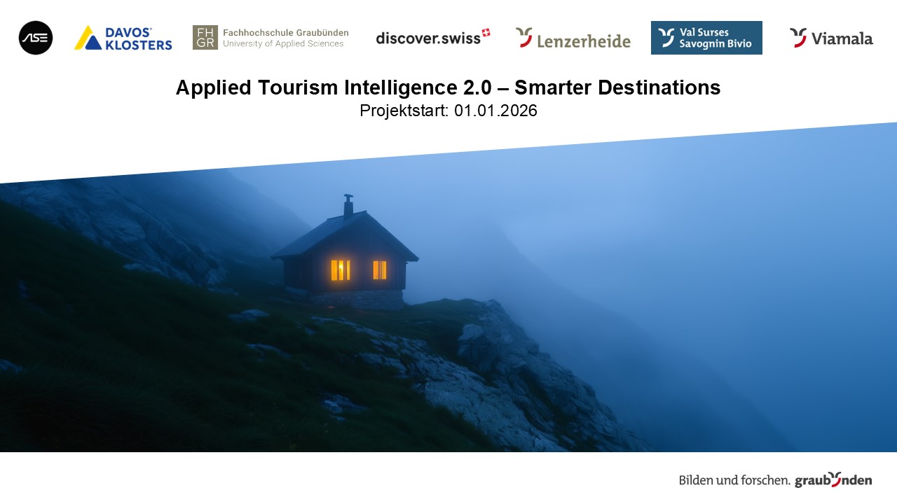 Das ITF-Projekt «Applied Tourism Intelligence 2.0 – Smarter Destinations» wurde offiziell von graubünden digital genehmigt und startet dieses Jahr in Zusammenarbeit mit der Destination Davos Klosters, Lenzerheide Marketing und Support AG, Tourismus Val Surses Savognin Bivio AG, Viamala Tourismus, discover.swiss sowie ASE (Analysis Simulation Engineering). Gemeinsam verfolgt die Projektträgerschaft wir ein klares Ziel: Destinationen und DMOs in Graubünden datenbasiert stärken und dabei nachhaltige Geschäftsmodelle & Data-Governance-Ansätze entwickeln. Das ITF wird dieses Projekt, welches voraussichtlich 3 Jahre dauert, wissenschaftlich begleiten und koordinieren.
