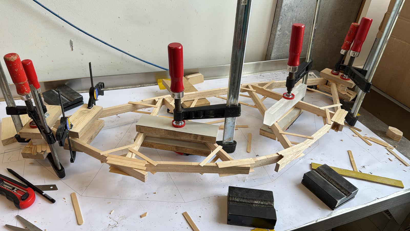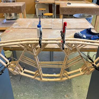 - fhgr-news-brueckenbau-wettbewerb-2026-3.jpgDie siegreiche Brücke in der Kategorie «Maximallast» des FHGR-Teams entsteht für den VSS-Brückenbau-Wettbewerb 2026.