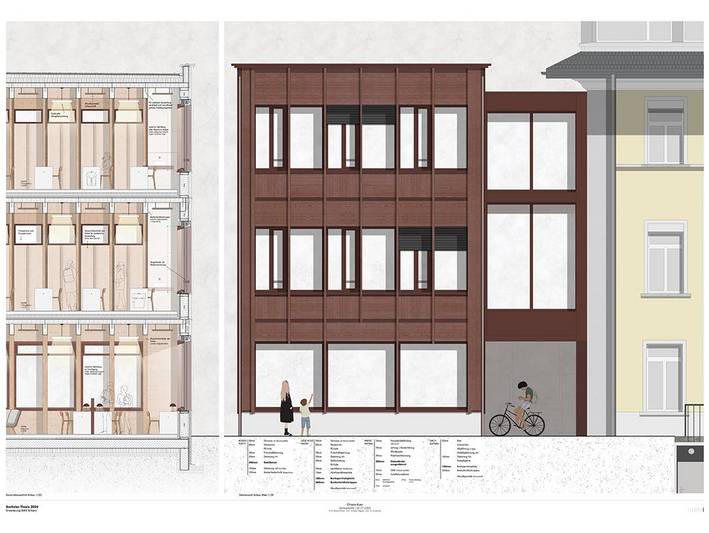 Die Bachelor Thesis führte sämtliches im bisherigen Studium erarbeitete Wissen zusammen. Durch die Projektarbeit haben die Studierenden eine eigene architektonische Haltung zur Aufgabenstellung, zum Programm und zum Ort entwickelt. Sie erledigten die Bachelor Thesis komplett in Eigenverantwortung und erarbeiteten sie neben den drei Zwischenkritiken selbständig.