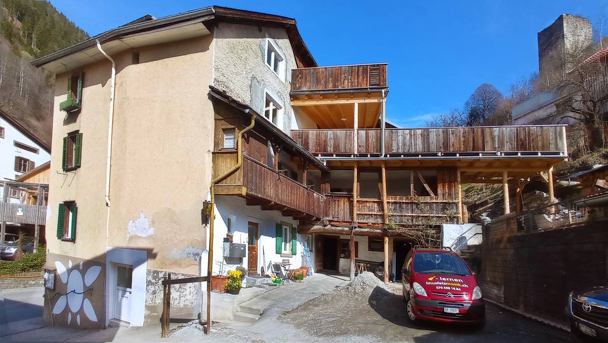 Das historische Wohnhaus mit über 300-jährigen Mauerteilen liegt genau auf 888.88 Meter über Meer. Es hat einen intakten Innenhof mit Lauben und Terrassen aus Altholz und liegt am Burghügel Canaschal mit einer Ruine aus dem 13. Jh, mit einer atemberaubenden Panoramaaussicht. Das frisch renovierte Wohnhaus liegt zwei Gehminuten erhöht vom Dorfplatz mit Einkaufsmöglichkeit, Gemeindezentrum und Parkgarage mit Postautohaltestellen entfernt. Die Postautohaltestelle Quadris und weitere Parkierungs-möglichkeiten liegen noch näher als der Dorfplatz.