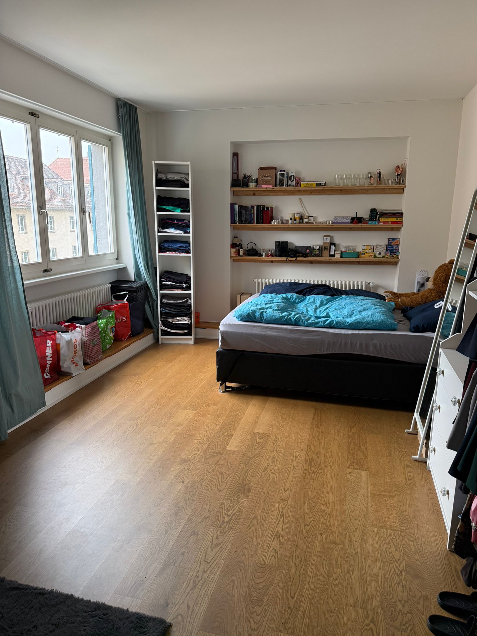 Helles geräumiges Zimmer in der Altstadt von Chur. Das Bad wird mit einem Mitbewohner (M) geteilt. In unserer Cluster-WG wohnen 6 Personen, die sich alle anderen Räumlichkeiten teilen. Dies umfasst Wohnzimmer/Küche, Balkone, Waschküche und Trockner auf dem Stock.