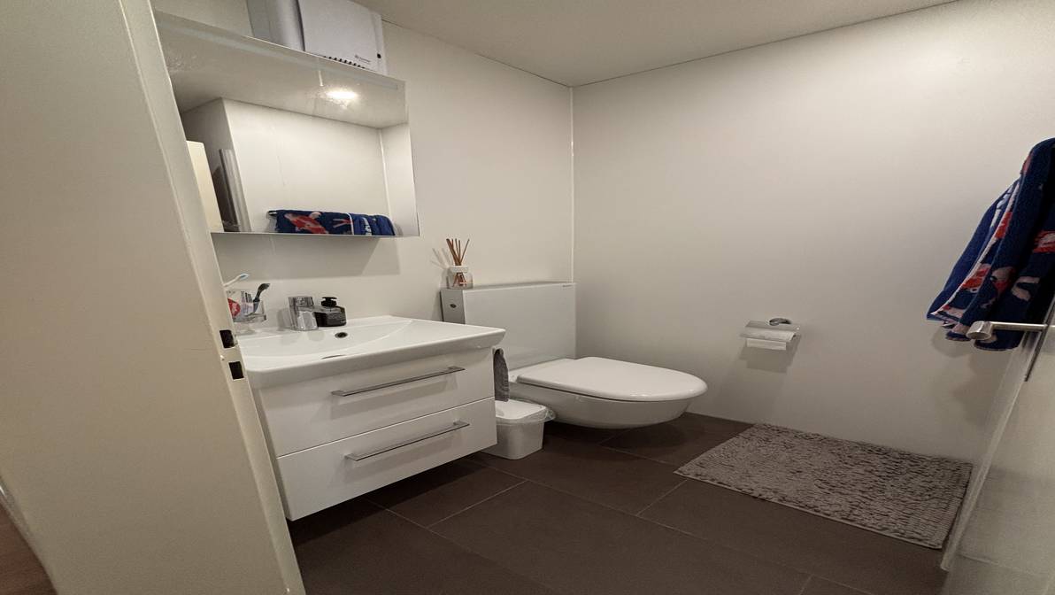 Die Wohnung ist gut gelegen: Der Bahnhof ist in ca. 13 Minuten zu Fuss oder in 5 Minuten mit dem Bus erreichbar. Die nächste Bushaltestelle befindet sich nur 2 Gehminuten entfernt. Zudem sind ein Lidl sowie ein Denner ganz in der Nähe.
